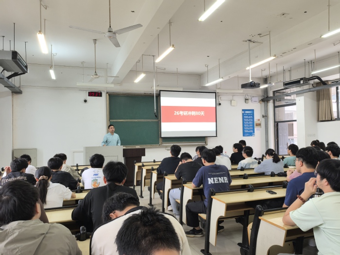 王爱国作了考研动员讲话,他指出,在国家大力发展新质生产力、推动绿色低碳转型的战略背景下,材料与化学工程领域面临前所未有的发展机遇。考研深造既是个人专业能力系统提升的关键阶段,更是把握科技前沿、服务国家战略的重要路径。他特别强调,学院毕业生凭借扎实的专业功底和突出的科研素养,在历年研究生招考中表现优异,为同学们树立了充分信心。他鼓励全体同学要勇担时代使命,将个人学术追求融入国家发展大局,以坚定的信念迎接挑战。