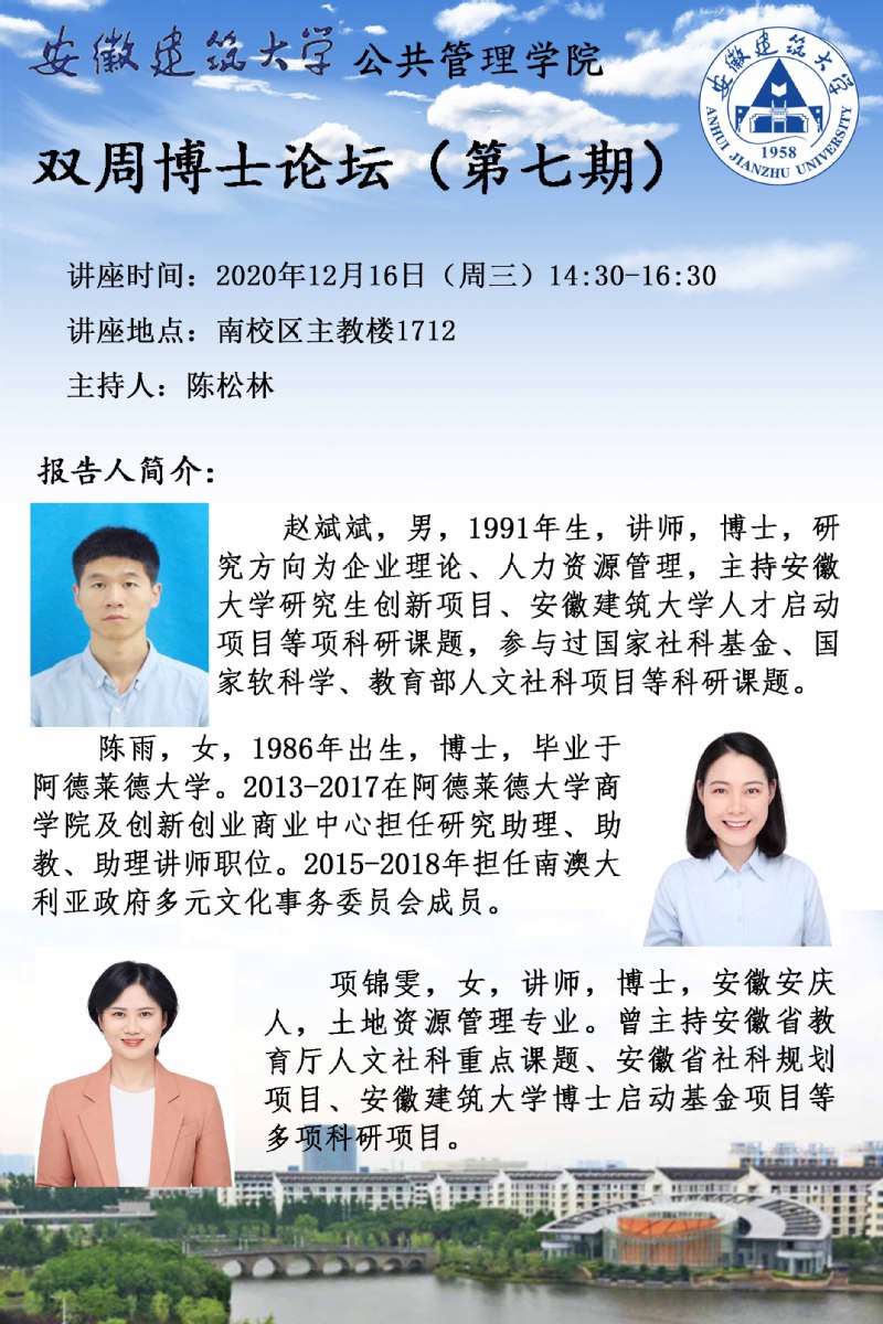 本网讯 12月16日,公管学院举行第七期“博士论坛”,赵斌斌、陈雨、项锦雯三位博士做了成果分享,学院全体青年博士、研究生参加本次论坛,论坛由蔡弘博士主持。