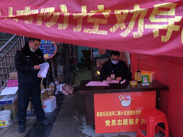 支部党员2016级自动化专业李允诺,遵循学校安排在家防疫期间,得知所在六安市金安区康乐社区需要人员定岗值守后,主动向社区主任报名申请,与社区工作人员一起坚守岗位。主要负责设置监测点,分发出入证卡片,定期核实并对进出小区的车辆进行管控。对小区居民进行温度测量,发现体温异常情况立即上报并实施隔离,配合各政府单位进行协调。二月的天,寒风刺骨,李允诺同学与其他社区防疫人员一起,在仅有几张木桌和简易帐篷搭建起来的防疫点一起站岗,手脚是冰冷的,但心是火热的。有些社区居民自发的给防疫点送来热水,感谢他们的一份坚守给社区带来的一份安心。
