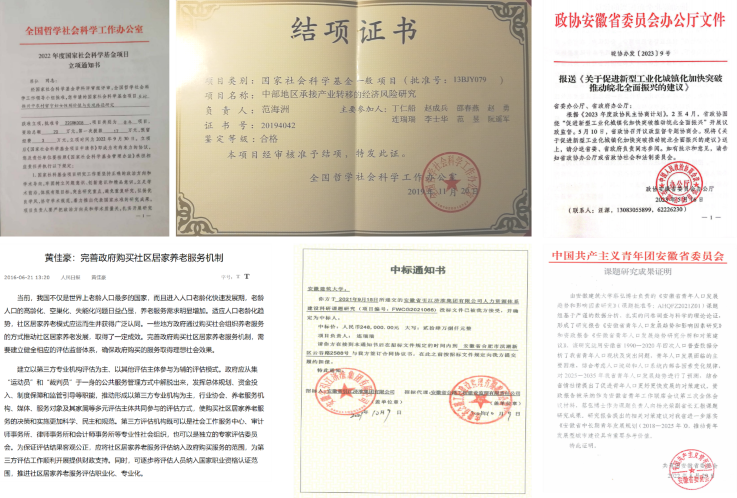 人社系教师党支部坚持理论学习促提升,力争在科学研究和社会服务领域谋求创新发展,不断积蓄育人势能。以教师党支部工作室为平台,组织党员教师强化理论学习、提升理论水平,激发开拓探索精神,提高科研创新能力,助推党员教师担当科研先锋,发挥模范带头作用。近年来,支部党员教师先后承担国家社科基金项目6项,承担教育部、民政部、省社科基金等省部级科研项目40余项,承担国务院发展研究中心、安徽省住房与城乡建设厅、安徽省卫健委员会等政府委托项目10多项,以及大中型企业委托项目30多项。通过不断研究创新,人社系党员教师取得较为丰硕的科研成果,在国家级出版社等出版专著近10部,在SSCI、SCI、EI、CSSCI等核心期刊发表论文30余篇,多份资政报告获省部级领导批示,多项研究成果被政府部门采纳,多篇研究论文发表于《人民日报》《光明日报》等重要报刊,并引起热烈反响。
